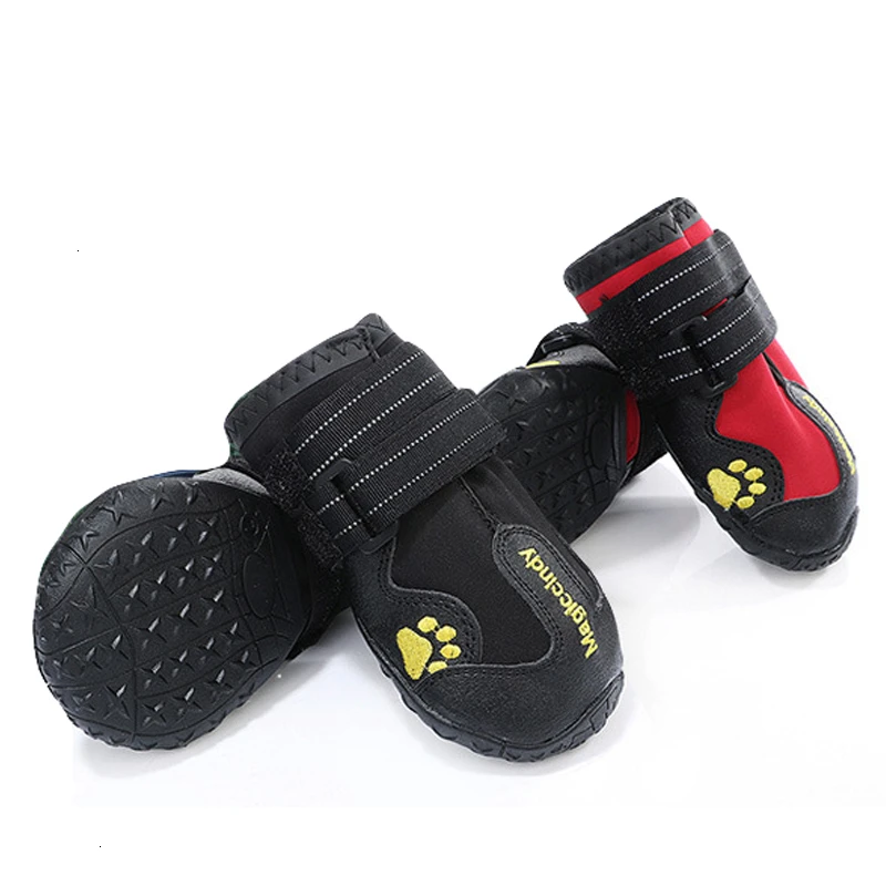 MATERIAL - Water-resistant material, high-quality fabrics,wear-resistant, to bear or endure dirty, Waterproof dog shoes have cute pet paw embroidery, soft and hand washable, fashionable yet durable. The inner material surface is velvet to keep the dog's soles warm.