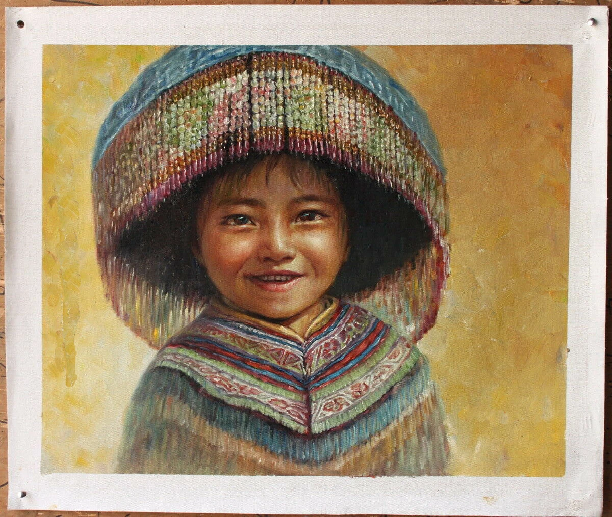 The perfect hand-painted on canvas by the old painter:Lovely Oriental Miao Girls Oil Painting