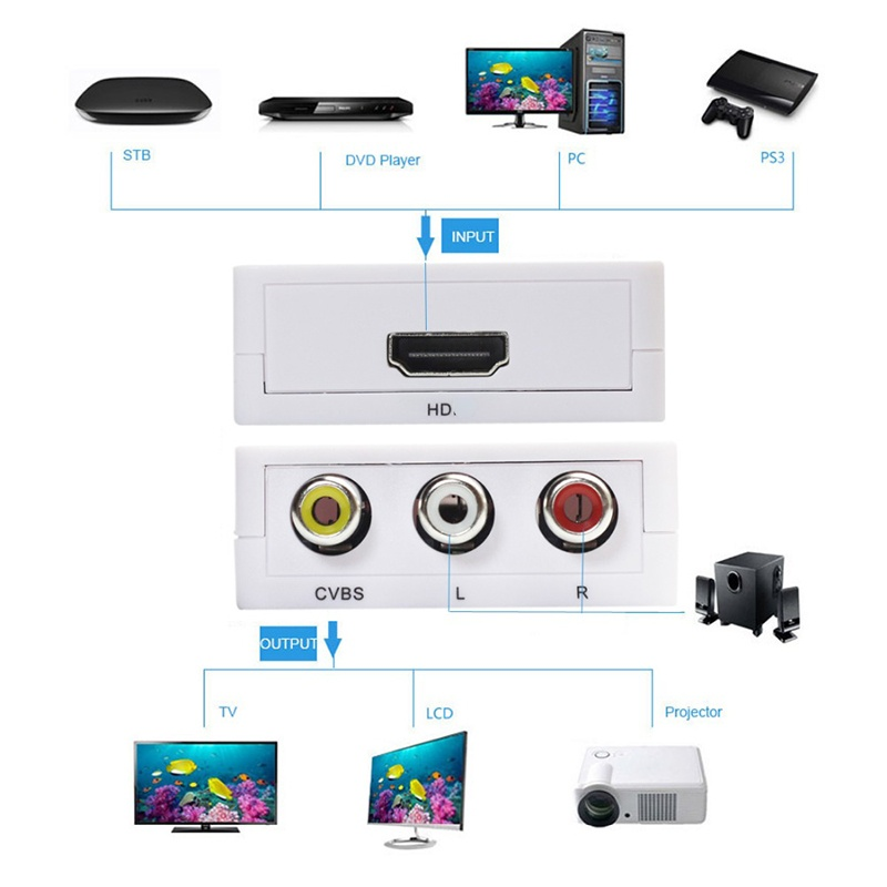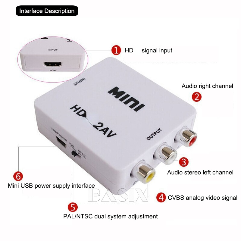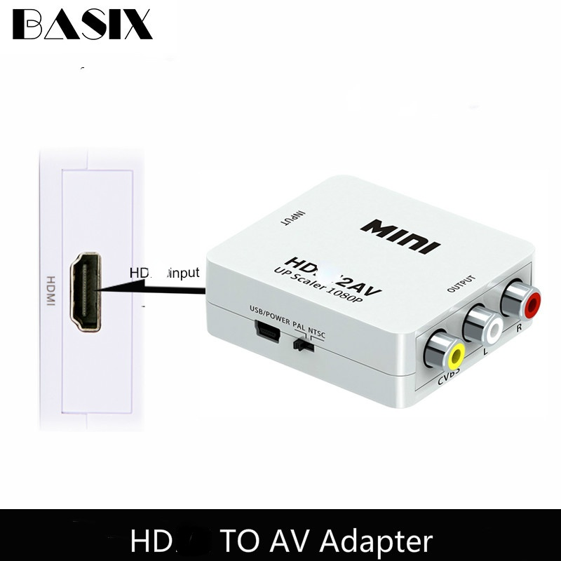 Basix HDMI-совместимый с av-адаптером 1080P видео конвертер HD2AV адаптер конвертер коробка поддержка NTSC PAL выход HDMI-совместимый с av-кабелем адаптер