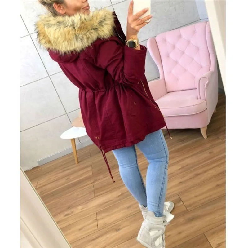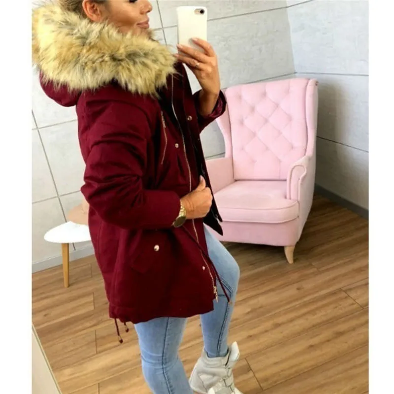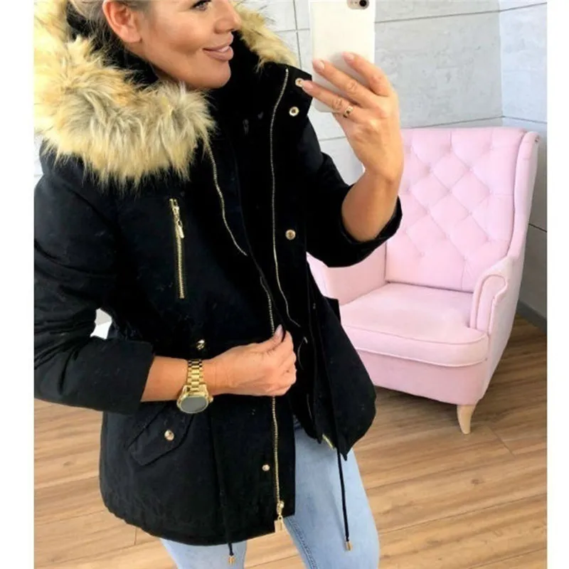 Женская модная зимняя теплая куртка с капюшоном в стиле милитари, повседневная верхняя одежда из искусственного меха