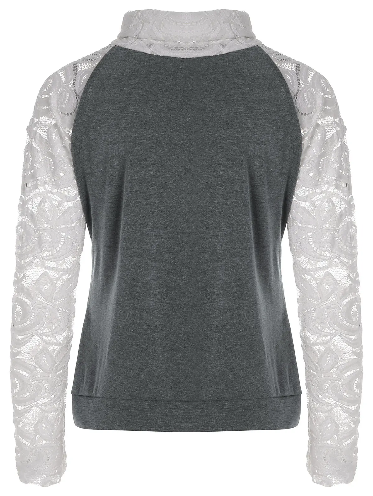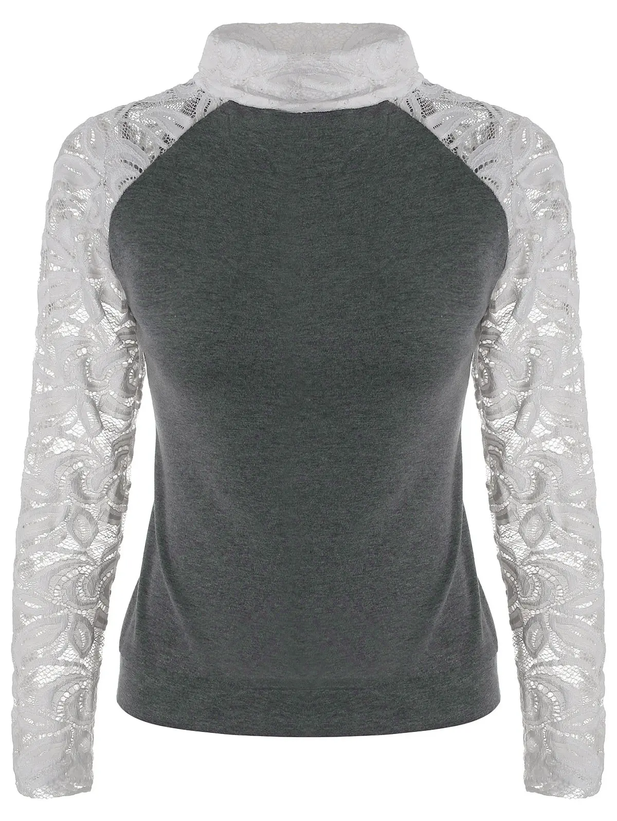 Стильная Водолазка с длинным рукавом, Вязанная женская футболка, сексуальные кружевные футболки, сетчатый пуловер, повседневные винтажные топы, осенняя туника