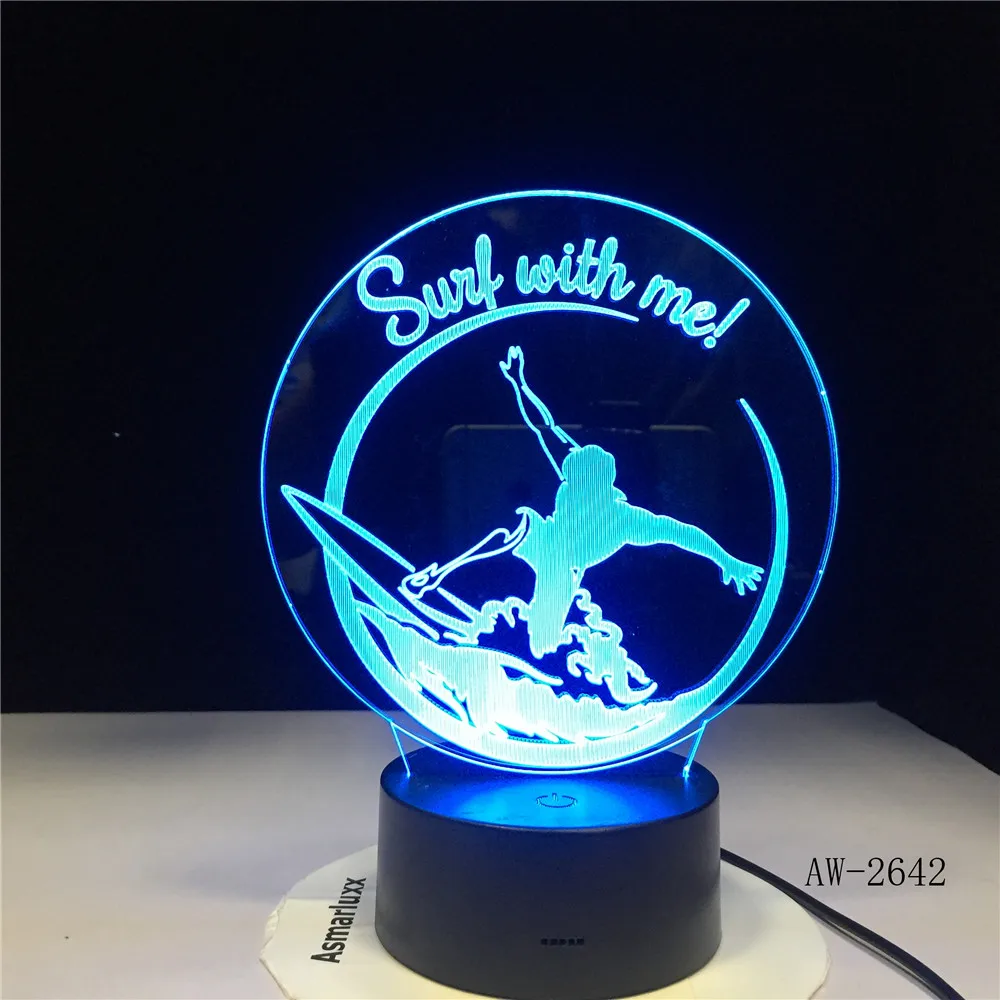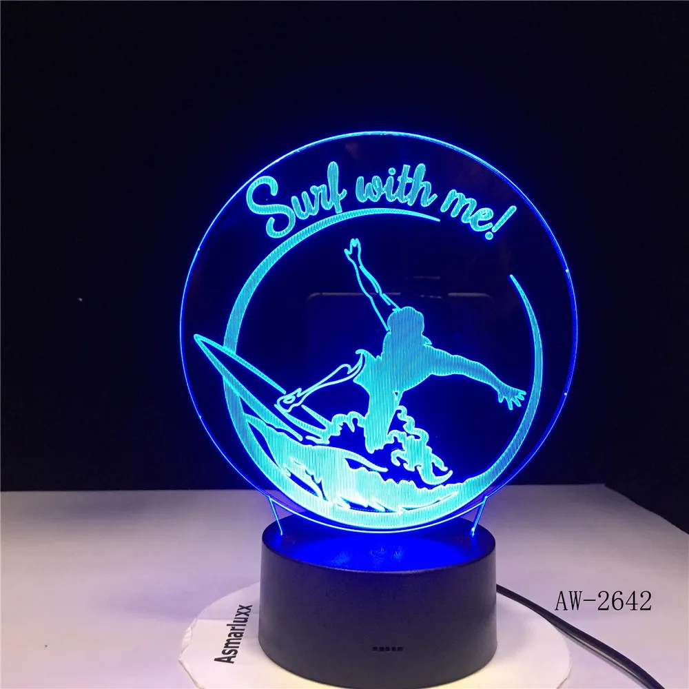 Волна серфинга 3d свет s семь цветов сенсорный пульт дистанционного управления светодиодный визуальный светодиодный ночсветильник дети подарок атмосфера настольная лампа