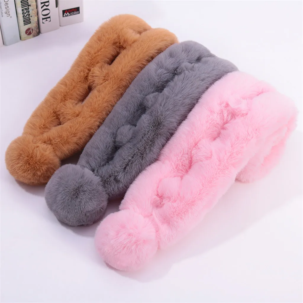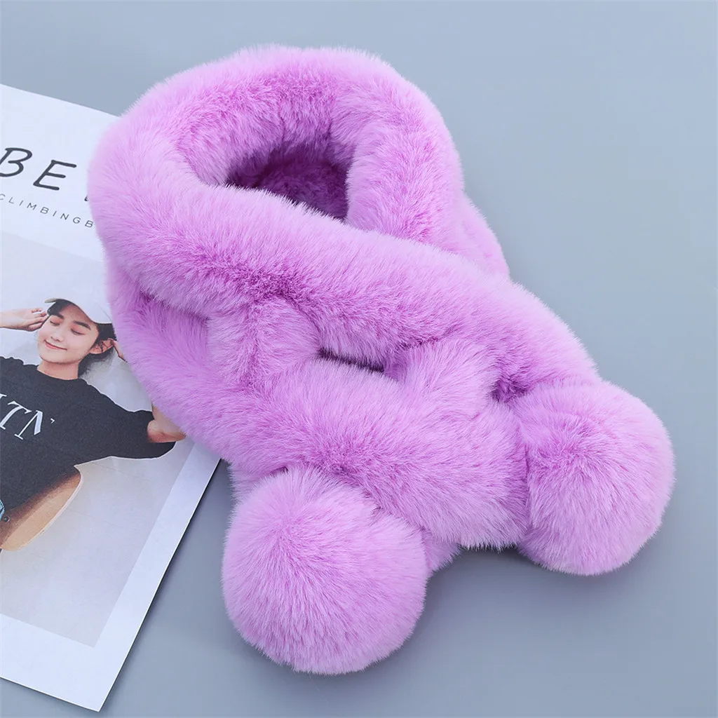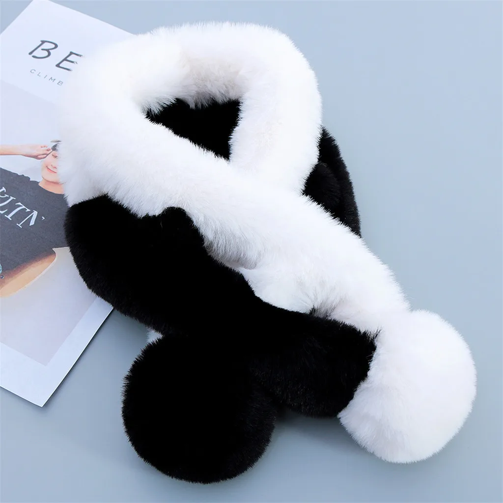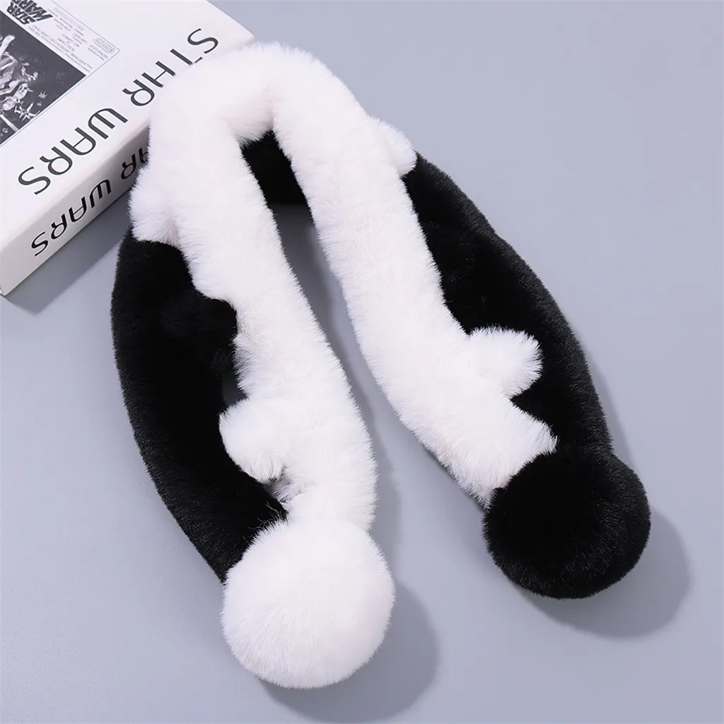Женская мода сплошной цвет шарф верхняя одежда нагрудник искусственный мех шарф теплый шарф