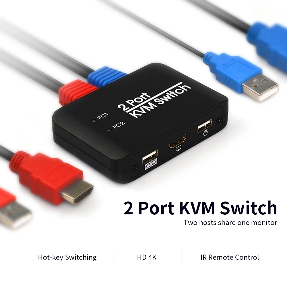 2 порта KVM переключатель USB2.0 HD 2,0 4K Поддержка порта U диск горячий ключ переключатель светодиодный канал ИК пульт дистанционного управления мышь и клавиатура