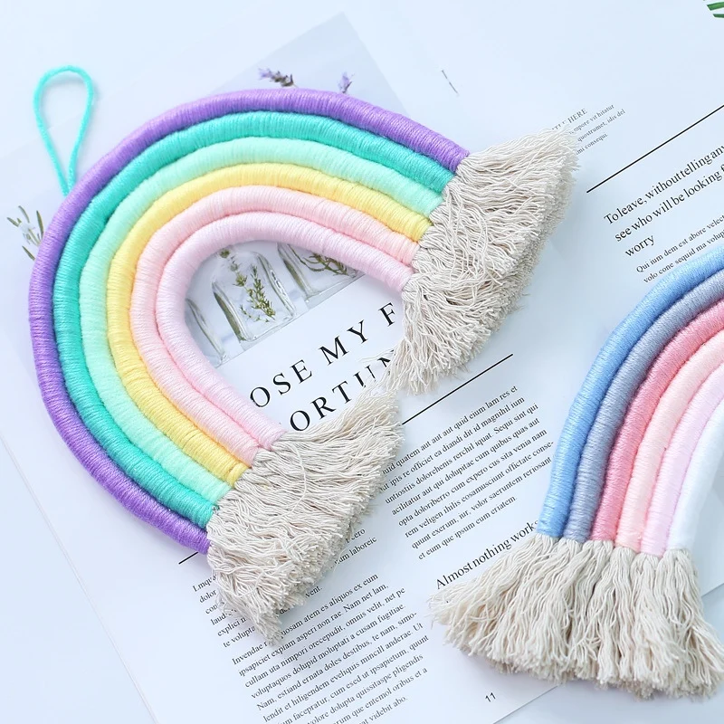 Ручное Тканое кольцо с радугой внутри гобелен на стену искусство украшение дома для гостиной, квартиры, детской спальни Декор