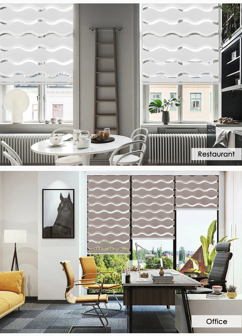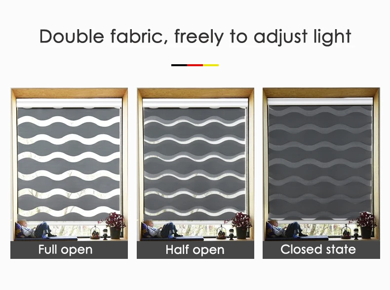 Умные моторизованные жалюзи модные волнистые ткани 50% ~ 85% затемненные оконные жалюзи зебра с литиевой батареей мотор сделан для измерения