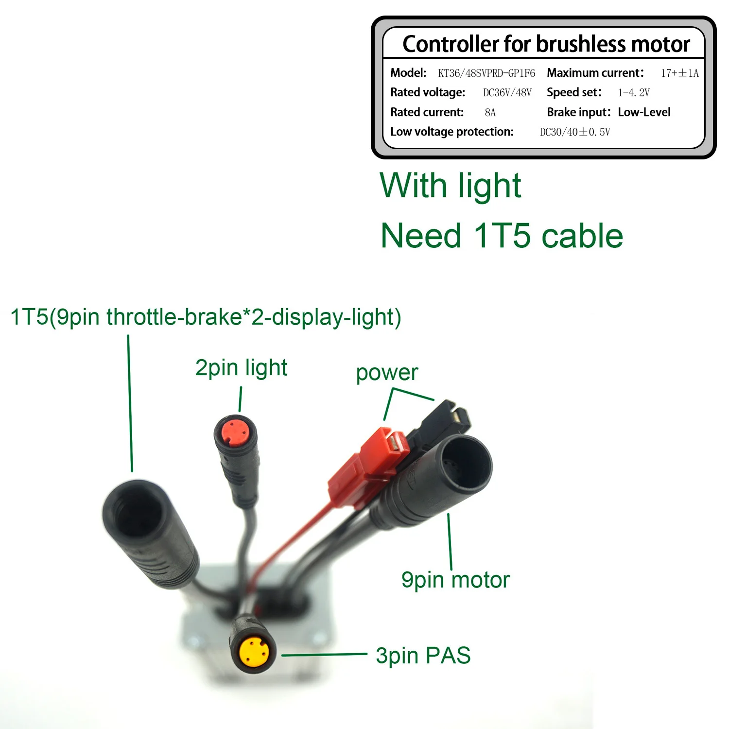 1, контроллер KT может быть совместим только с дисплеем KT (они имеют те же протоколы связи).Пожалуйста, убедитесь, что ваша система является системой KT.Водонепроницаемый разъем настолько особенный, что у нас нет возможности обещать, что он 100% совместим (из-за последовательного соединения). Перед размещением заказа проверьте, есть ли у вас соединительный кабель Julet или Higo 9pin.