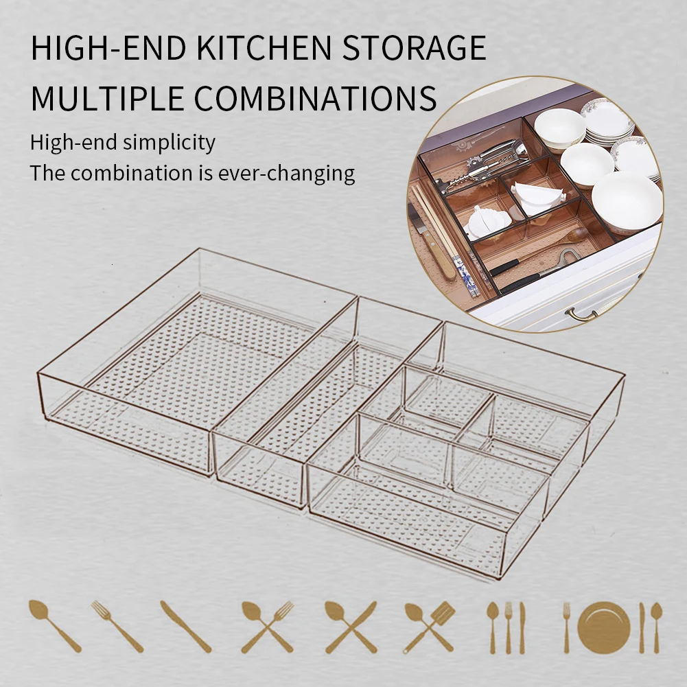 Ящик для хранения кухонного ящика, пластиковая многослойная перегородка, оформление рабочего стола, коробка для хранения столовой посуды
