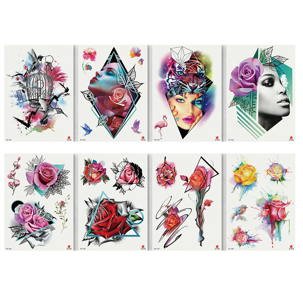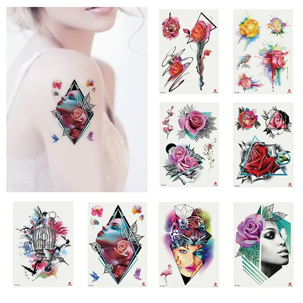 Птица цветок женские наклейки в стиле боди-арт водонепроницаемые временные фальшивые татуировки стикер