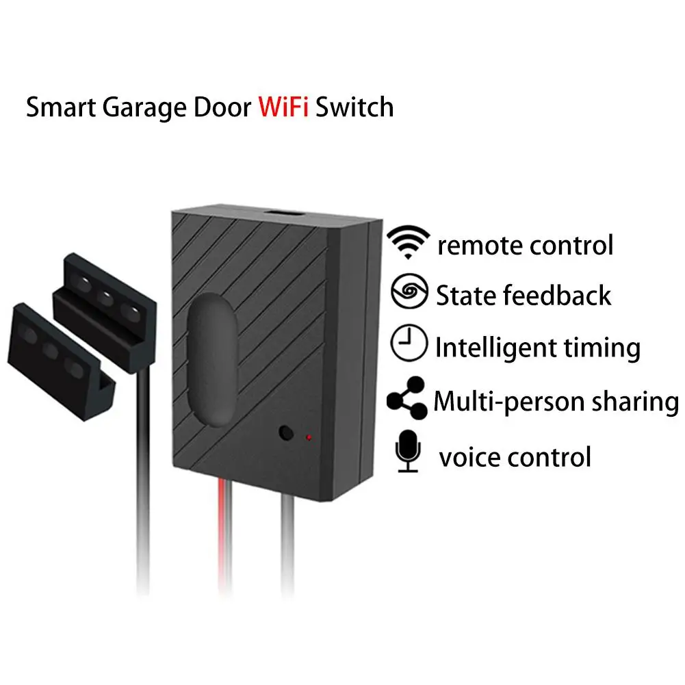 Особенности:1. Дверь гаража легко открывается и закрывается путем преобразования существующих Wi-Fi сети и открывания Гаражных дверей в одно интегрированное умное устройство, которое можно контролировать и контролировать из любой точки мира. Примечание: когда дверь гаража автоматически открывается, проверьте, есть ли Функция синхронизации. Если вам не нужна эта функция, выключите таймер петли!2. Просто нажмите на мобильное приложение для eWeLink или активируйте открывалку для гаражных дверей, выдав голосовую команду на ваше вспомогательное устройство для Alexa или Google или управляя рядом с гаражной дверью.3. Многопользовательский доступ и удаленный мониторинг; авторизует несколько человек, чтобы войти в ваш гараж, открыть/закрыть дверь, когда гость прибывает и вы оставляете; получить уведомление, если вы забудьте закрыть дверь4. Требуется подключение WiFi 2,4 ГГц. Быстрая и простая установка без необходимости профессионального; Совместимость практически со всеми открывателями гаражных дверей (проверьте веб-сайт совместимых открывателей)5. Непревзойденное лучшее шифрование безопасности; надежная, безопасная запись активности в реальном времени; Примечание: один контроллер на открывалку двери гаража. Широкая совместимость: совместимость с большинством брендовых открывателей гаражных дверей.Особенности:Удаленное ВКЛ/ВЫКЛ.: преобразует существующую сеть Wi-Fi и Открыватель гаражных дверей в встроенное умное устройство, затем просто нажмите на смартфон, чтобы открыть и закрыть дверь гаража.Напоминание: Вы выходили из дома и забудьте закрыть дверь гаража? Не волнуйтесь, умный открывалка для гаражных дверей Eachen предупредит вас.Примечание: человек и время, когда дверь гаража открывается или закрыта в режиме реального времени. Вы также можете настроить голосовое оповещение.График: вы можете установить расписание, чтобы открыть и закрыть дверь гаража. Легко управлять гаражными дверями.Голосовое управление: идеально Совместимо с Amazon Alexa/Echo. Открытие и закрытие гаражной двери можно управлять несколькими способами-просто нажав на смартфон для мобильного приложения eWeLink garage или отправив голосовую команду для Alexa.Доступ к устройствам: вы можете поделиться им с семьей или гостями. С курсом вы можете получить доступ в любое время.История: вы можете проверить открытие или закрытие гаражной двери в приложении, чтобы обеспечить безопасность гаража.Технические характеристики:Приложение: Используйте приложение для eWeLinkИспользование: для Amazon Alexa, Google Assistant, IFTTT мощность: 5 В постоянного токаДействие: 3-15 ммСтандарт беспроводной связи: IEEE802.11b/g/nТип беспроводной связи: всего 2,4 ГГц, не поддерживает 5GМобильный телефон: для "eWeLink" для android и IOSДлина кабеля: около 5 мМатериал: АБС + ПКПростая установка:Используйте адаптер 5 в постоянного тока и кабель micro USB для питания устройства.Подсоедините красные и черные провода к открывалке гаражной двери: Подключите каждый терминал к тому же терминалу, который завершен с помощью настенная кнопка провода.Подключите датчик и установите его на дверь гаража с помощью винтов/наклеек/кронштейнов.Управляйте устройствами на вашем смартфоне.Упаковочный лист:1 * WiFi умный переключатель открывалка для гаражных дверей1 * наборы монтажных аксессуаров1 * соединительный кабель с разъемом USB1 * USB кабель 1 * Руководство пользоват