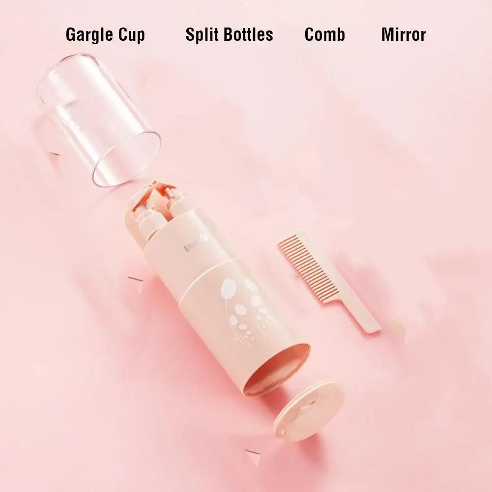 В комплект входит: моющийся костюм из 5 предметов (отдельные бутылки * 2, зеркала * 1, чашка для полоскания рта * 1, расческа * 1)
