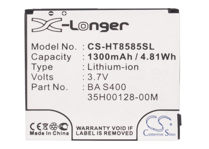 Cameron Sino Модель: CS-HT8585SL номер детали: 35H00128-00M BA S400 BB81100 Совместимость для: Dopod HD2 T8588 HTC/HTC HD2 Leo 100 T8585 T9193 T-Mobile HD2 Leo Вольт: 3,7 V Тип: литий-ионный Цвет: черный Емкость: 1300 мАч/4.81Wh Размер: 51,45x45,81x4,54 мм Гарантия: 12 месяцев