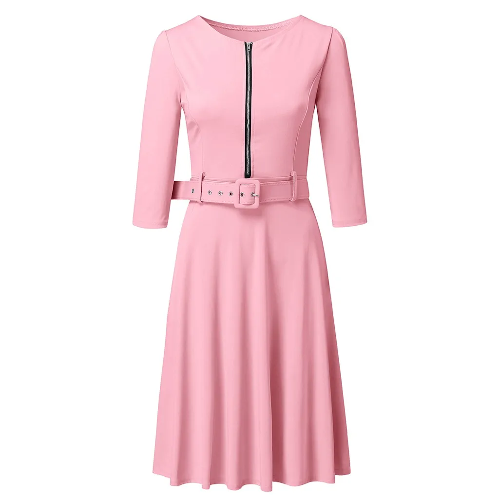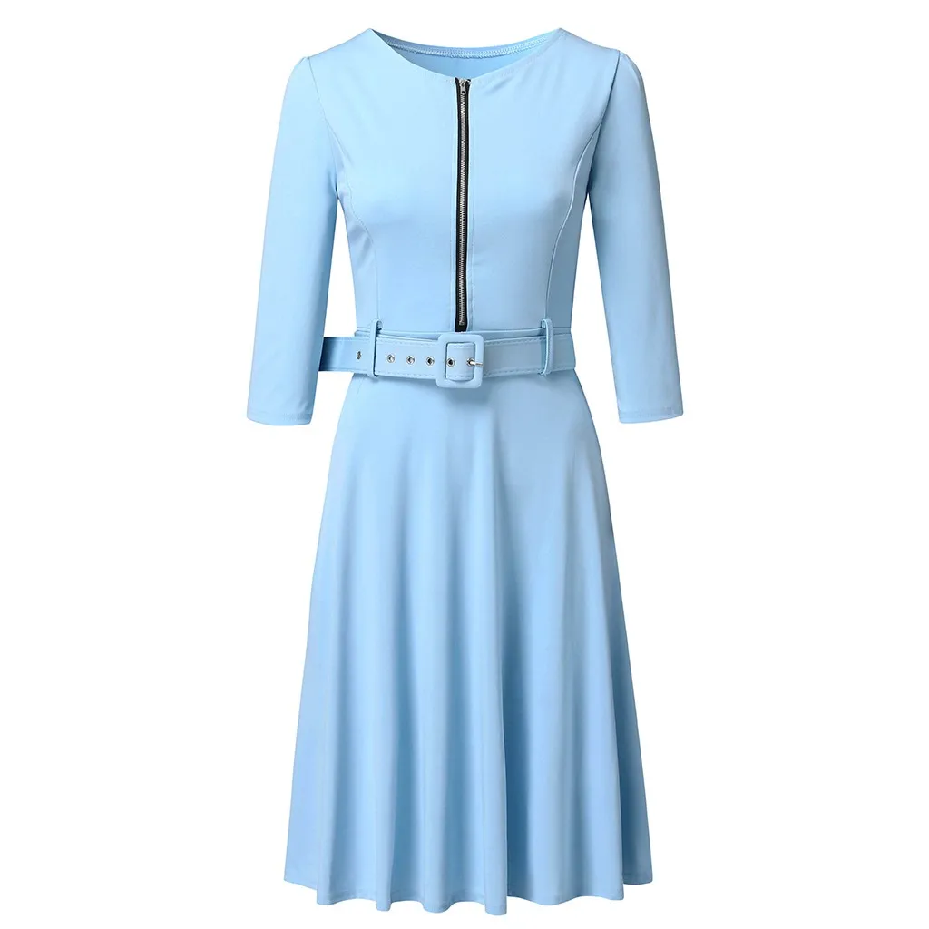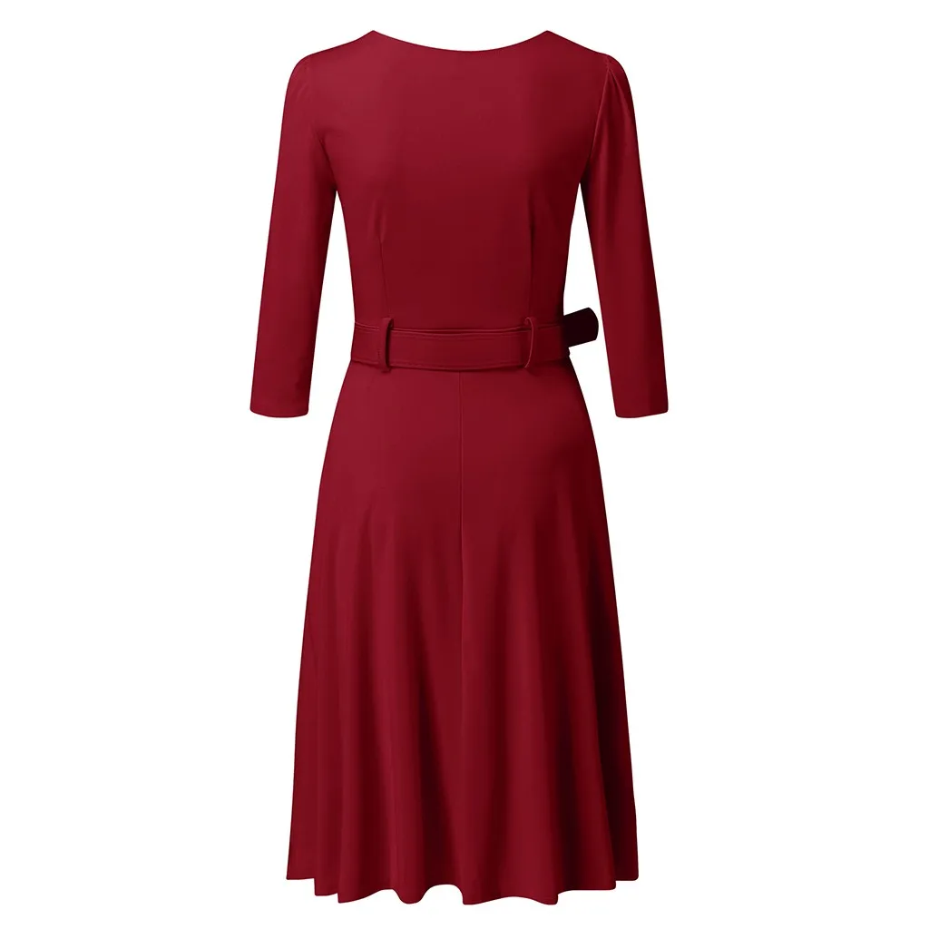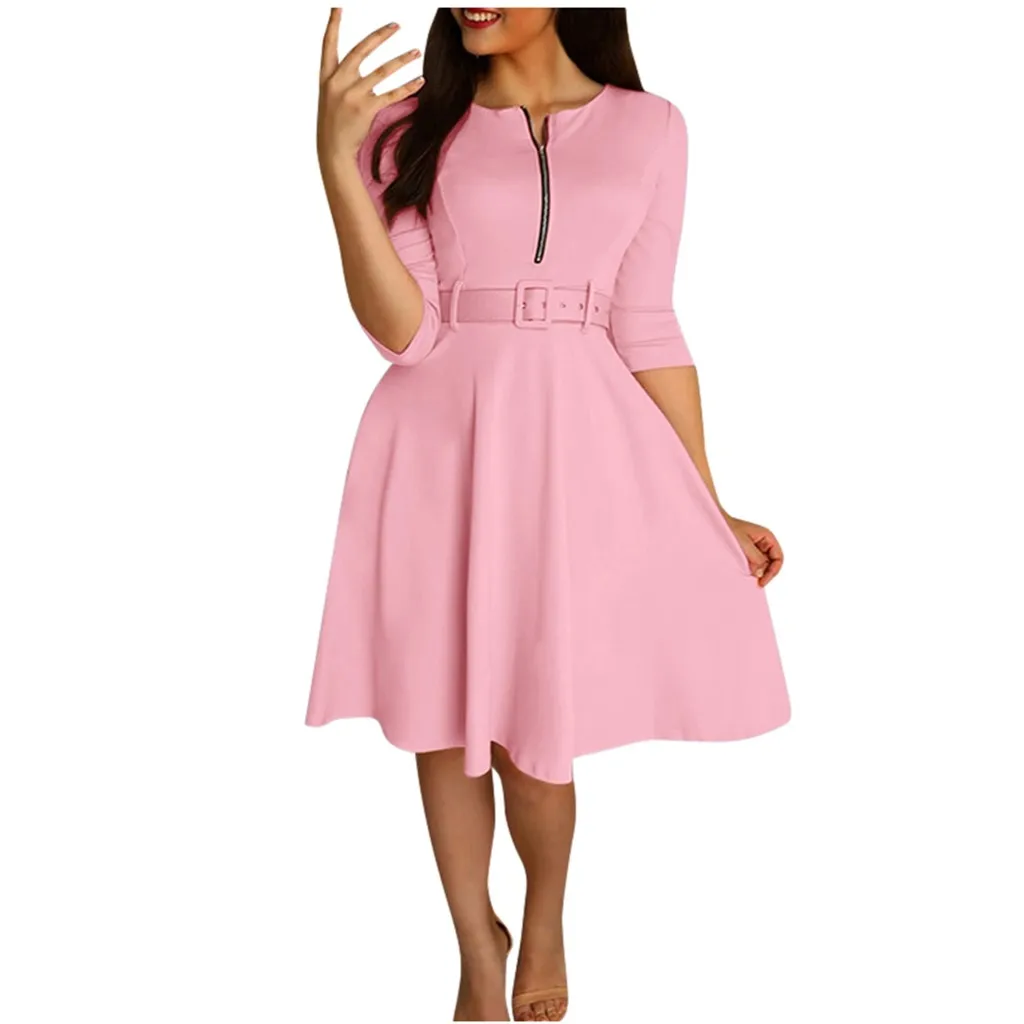 Женская мода круглый вырез сплошной три четвертиВечернее платье с рукавами