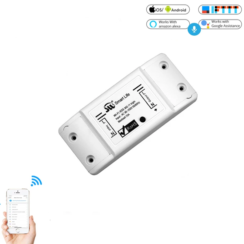 Умный светильник ключатель света «сделай сам» с Wi-Fi, универсальный таймер выключателя, беспроводной пульт дистанционного управления, работает с Alexa Google Home, автоматизация умного дома Основные характеристики: 1. Голосовое управление: после того, как у вас появится этот переключатель, вы можете подключить его к Amazon Alexa(Amazon echo/dot/tap) или Google Assistant для голосового управления. 2. Пульт дистанционного управления Wi-Fi: вы можете использовать приложение «Smart Life» в вашем смартфоне для управления выключателем по беспроводной сети с помощью Wi-Fi или 4G сети. Концентратор не требуется. 3. Функция таймера: Возьмите полный контроль над освещением дома или офиса благодаря таймеру расписания, который позволит вам планировать точное время для автоматического включения/выключения света и приборов. 4. Совместно используемое устройство: Этот переключатель samrt может иметь несколько контрольных участков, которыми управляют члены семьи. Один мобильный телефон также может управлять многими переключателями. 5. Добавьте больше функций с IFTTT: «Если это, то это»-это бесплатный веб-сервис, позволяющий вам делать удивительные сияния с выключателем света, поворотными лампами, вентиляторы или другая Электроника включаются перед тем, как вы приходите домой или выключаетесь, когда вы уходите, с IFTTT Сертификация: FCC, CE, RoHS