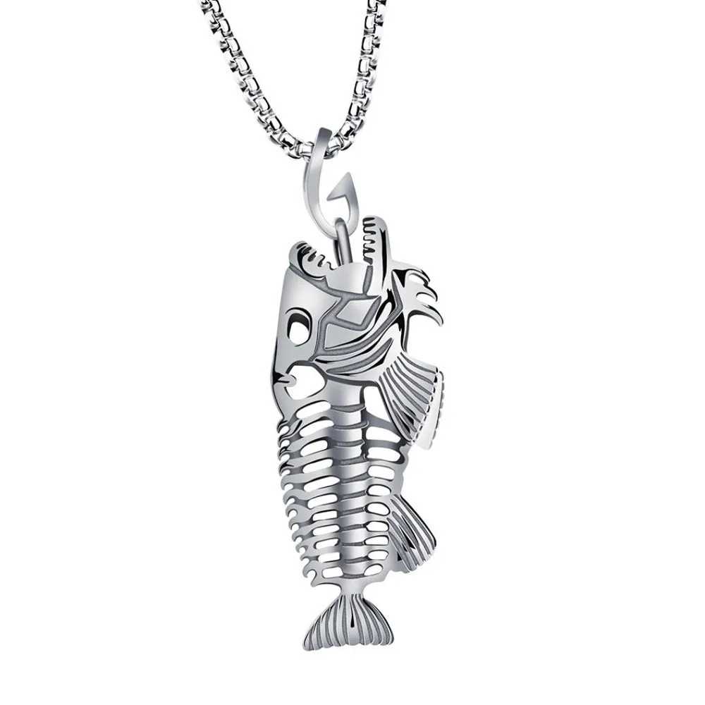 Кулон из нержавеющей стали с крюком для рыбной кости и рыбалки, серферная цепочка, ожерелье, золотые, черные, серебряные ювелирные изделия унисекс