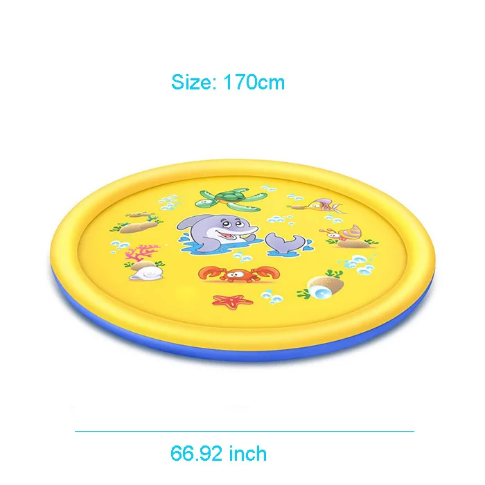 1. Большой бассейн с распылителем: 110 см/170 см (опционально) 2. Дизайн с большим количеством морских животных, очень интересный для детей и взрослых. 3. Изделие плотное, мягкое и прочное. Он изготовлен из высококачественного непромокаемого материала без ФТАЛАТА. 4. Подходит для детей и взрослых, подарки на день рождения, Летние подарки.