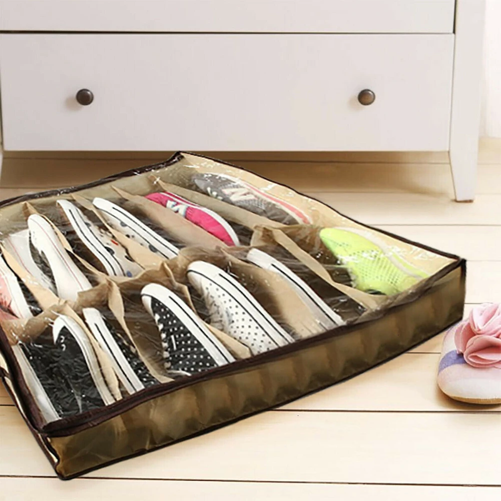 12 карманов коробка для хранения обуви Органайзер для одежды для экономии пространства пыленепроницаемый контейнер держатель сумка с ручкой на молнии