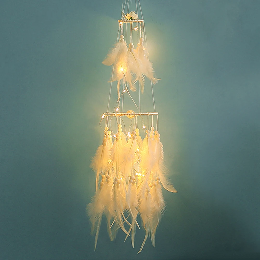 Название: Ловец снов с белыми перьями и огнями Материал: металлическое кольцо + Перья + пластик + светодиодный бисер Светильник источник света: теплый светильник светодиодный строка Светильник: 2 батарейки (в комплекте) Высота: около 70 см Диаметр кольца: большое кольцо: около 11 см/4,3 дюйма; Маленькое кольцо: около 5 см/2,4 дюйма Вес: около 90 г