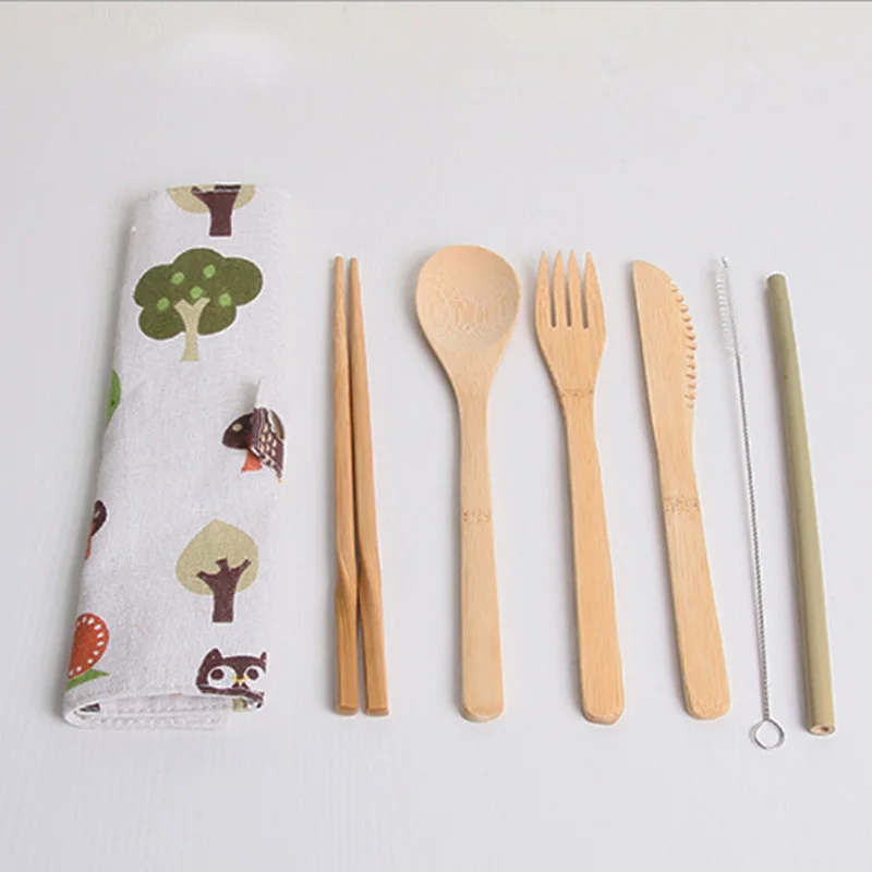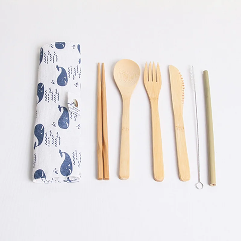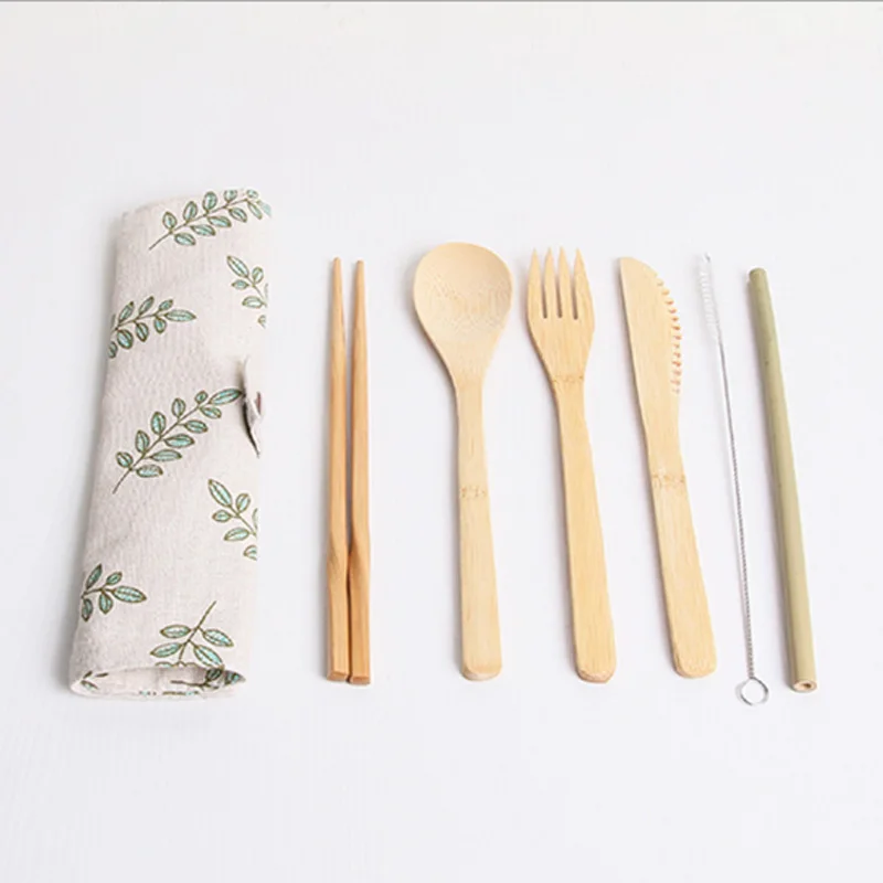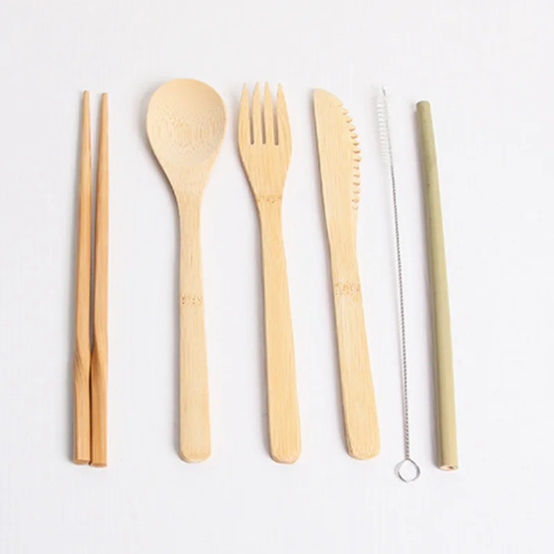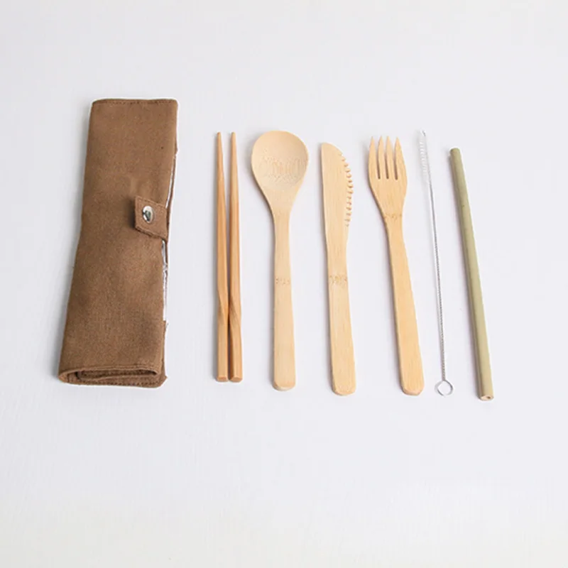 В комплект входит: 1 нож + 1 вилка + 1 ложка + 1 палочка для еды + 1 щетка + 1 бамбуковая соломинка + 1 сумка (7 шт. в комплекте)
