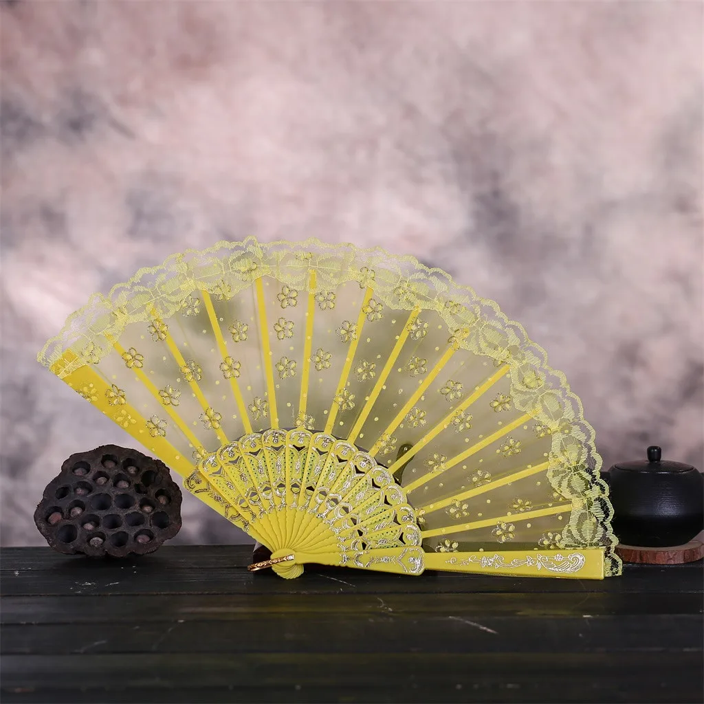 Лучший китайский Стиль Танцевальная Свадебная вечеринка кружева Шелковый складной ручной цветок Вентилятор