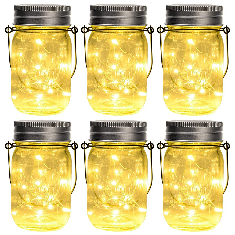1/2/4/6PACK 2M 20LEDs Battery / Solar Powered Glass Mason Jar Lights LEDs Fairy Firefly String Lights Best Patio Yard Desktop Party Decor Outdoor Solar Hanging Lanterns Mason Jar Included