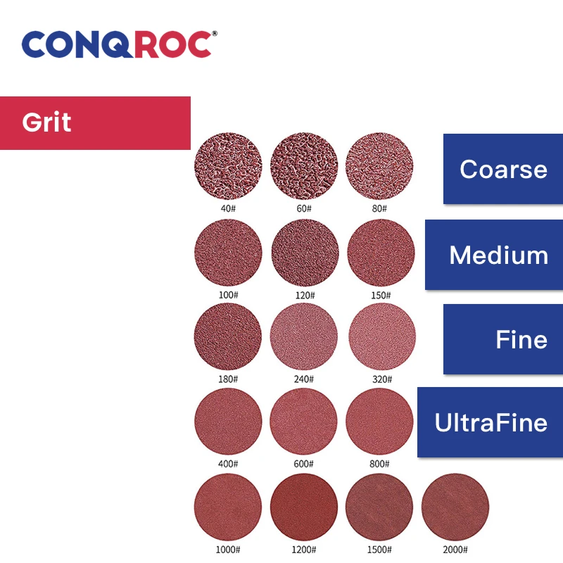 -Грубая: 40 #, 60 #, 80 # -Средний: 100 #, 120 #, 150 # -Отлично: 180 #, 240 #, 320 # -Ультра-тонкий: 400 #, 600 #, 800 #, 1000 #, 1200 #, 1500 #, 2000 #