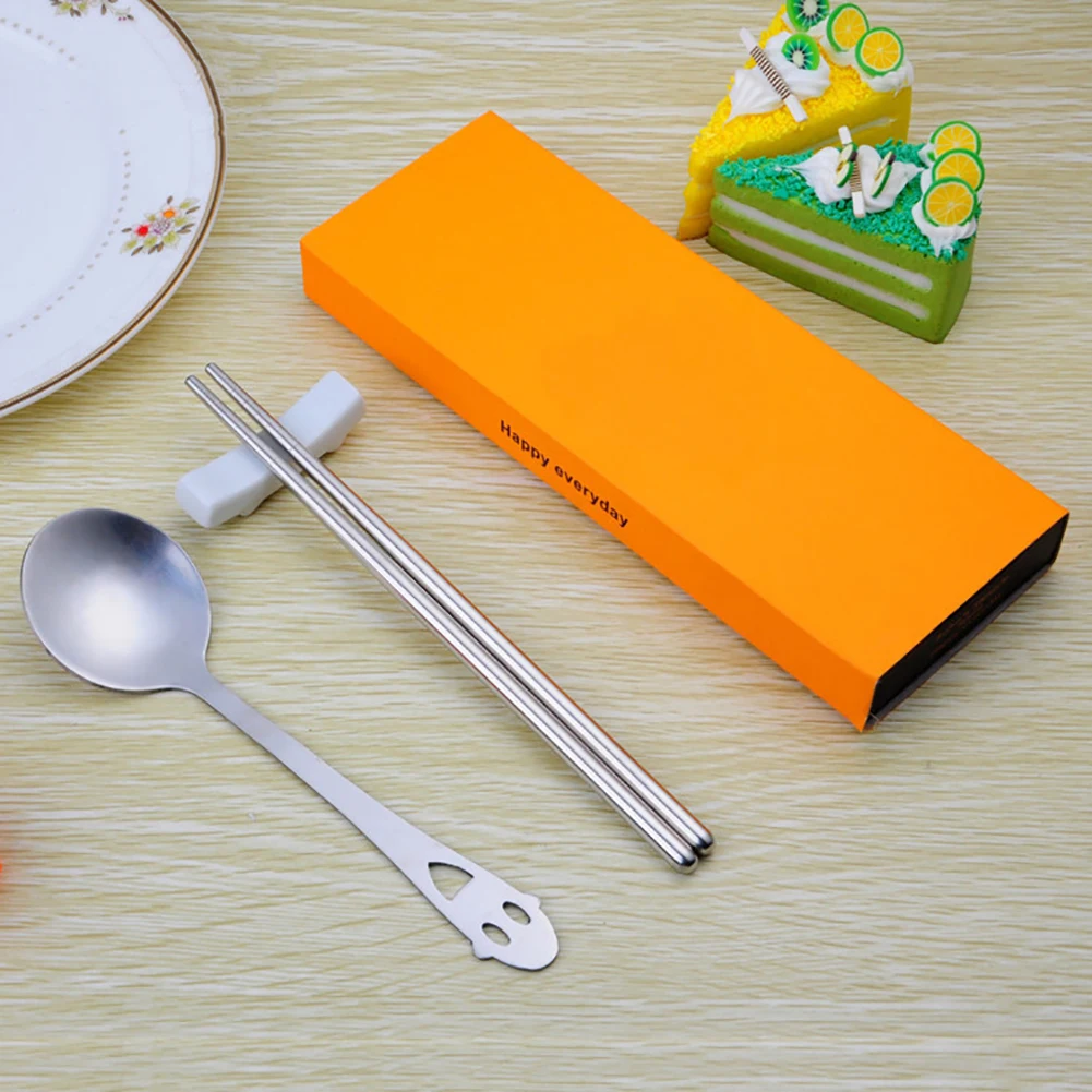 2 шт портативные палочки для еды из нержавеющей стали полые улыбающееся лицо ложка набор посуды