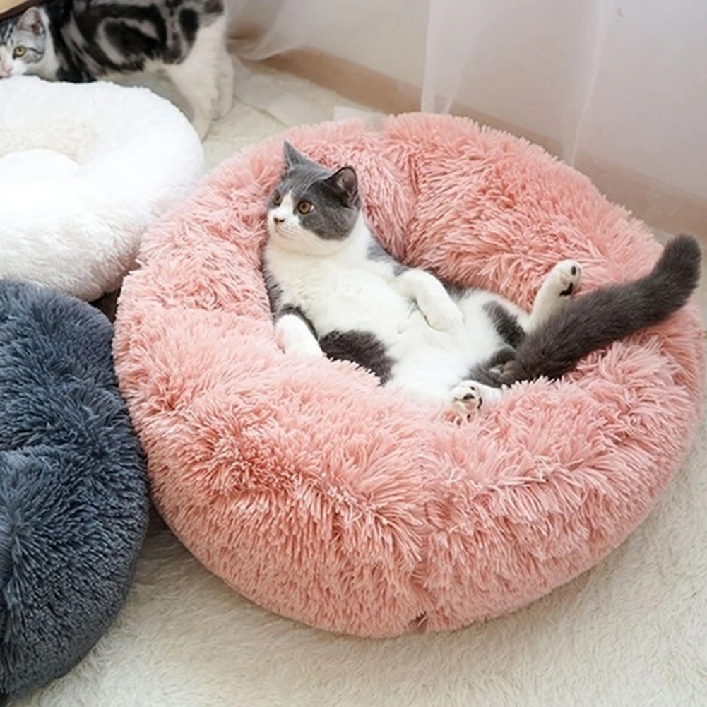 Мягкий теплый плюшевый питомник для домашних питомцев кошек и собак, круглый коврик для спальной кровати