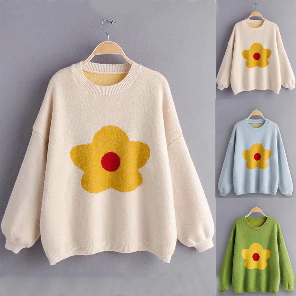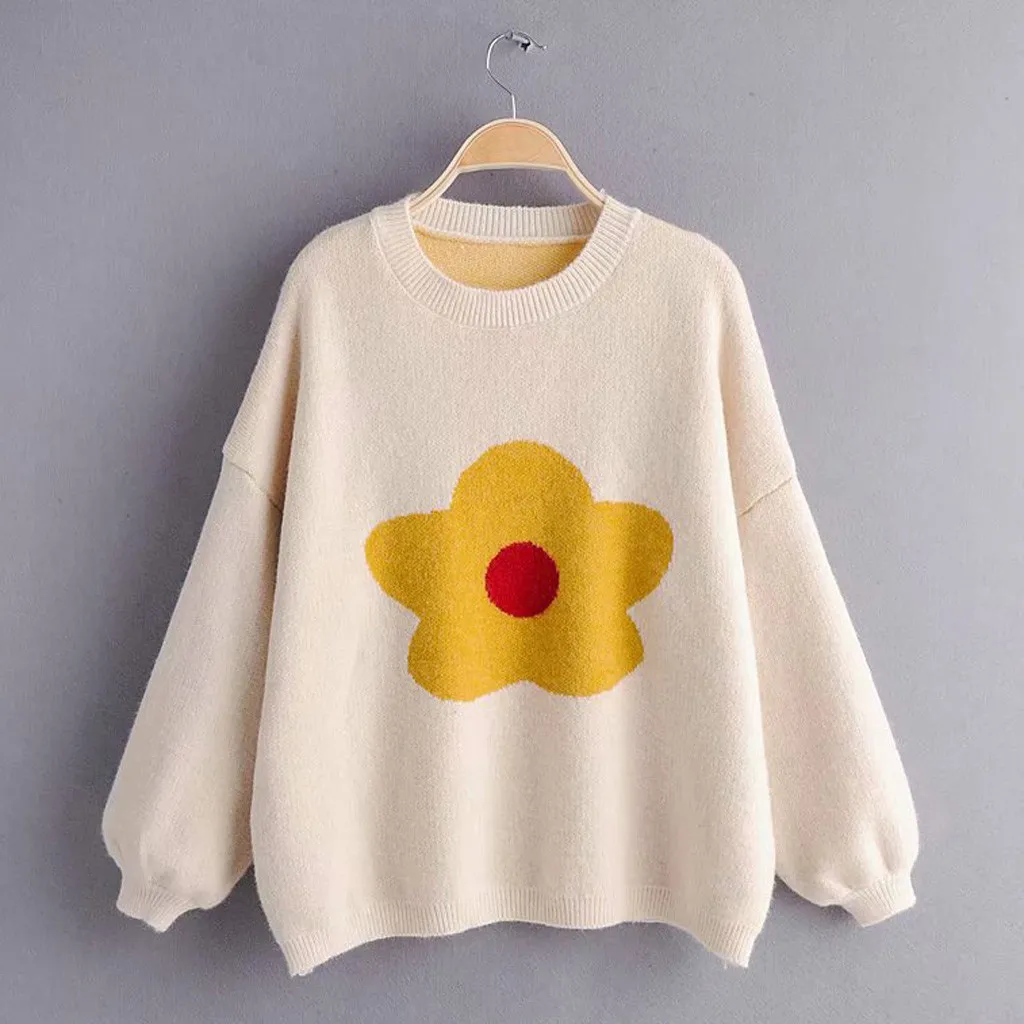 Women's Fashion Casual Loose O-Neck Long Sleeve Loose Sweater Top Blouse