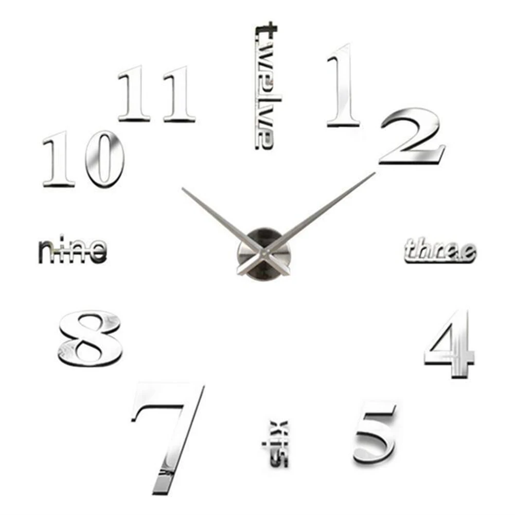 Modern Wall Clock 3D Sticker Mirror Effect DIY Art Home Office Living Room Decor