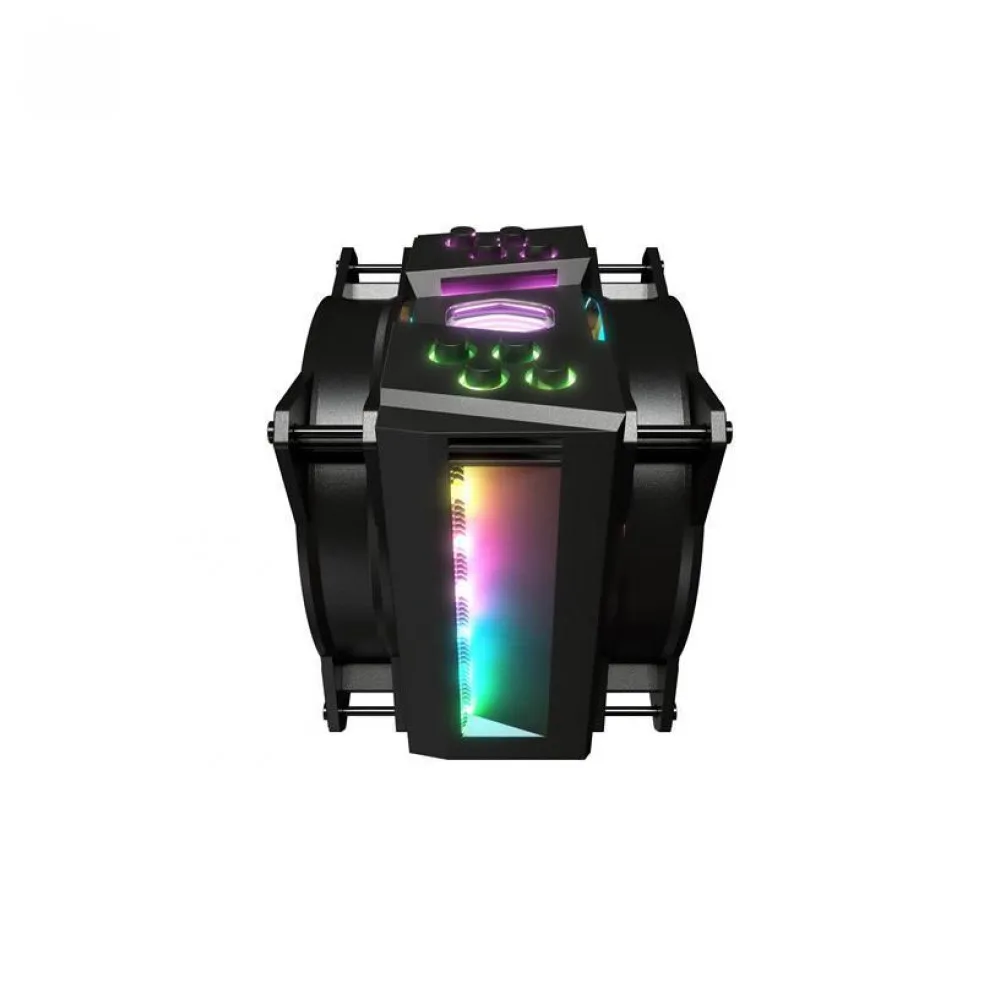 MasterAir MA410M - флагманский кулер с 4-мя тепловыми трубками, который оснащен датчиком теплового обнаружения и специализированными световыми эффектами A-RGB. MasterAir MA410M наследует отличную производительность охлаждения и надежность серии Hyper с технологией непрерывного прямого контакта (CDC) 2.0. Специальный шестигранный вырез с алюминиевым оребрением дает кулеру уникальную подсветку с A-RGB, которую можно настраивать с помощью контроллера. Датчик тепла будет контролировать температуру процессора и отображать изменение температуры с помощью светового индикатора. MA410M также оснащен двумя вентиляторами MF120R, которые обеспечивают конфигурацию "Push & Pull" для максимального охлаждения процессора.