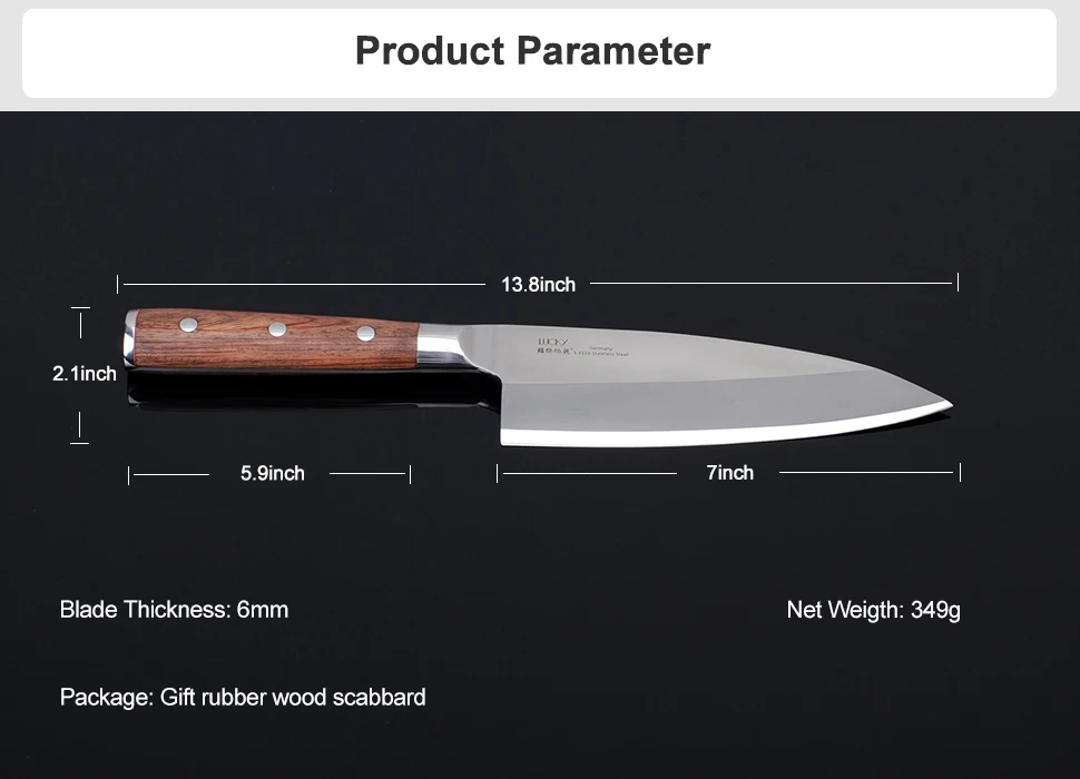 ●Японский филе рыбы/нож Деба:Традиционный японский нож Деба разработан не только для того, чтобы преуспеть в приготовлении рыбы, включая измельчение, напыление и отжимание с точностью, но и ярмарки превосходно для разделения птицы или для использования в качестве овощерезки.