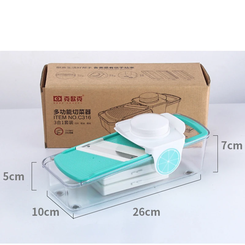1. Экономьте время: Этот слайсер поставляется с 3 различными лезвиями, может легко нарезать овощи и фрукты на juliennes и ломтики, ваше время приготовления может быть уменьшено.