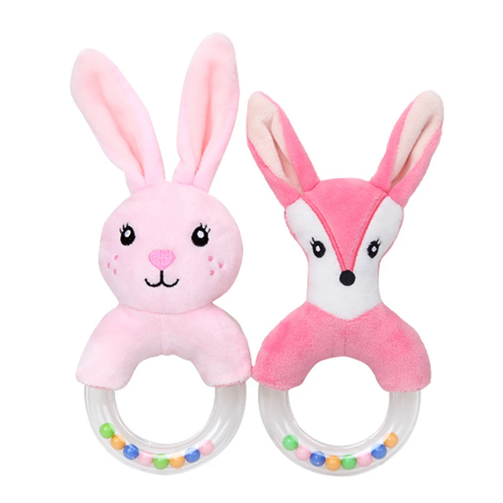 Soft Cartoon Fox Rabbit Sheep Plush Handbell Infant Baby Sound Rattle Toy Gift