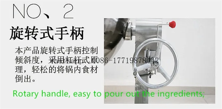 stirring speed:23 rev / minstirring formscraping bottom stirringWeight240kgDetailed of the 100L electric heating type jacketed kettle Sandwich cooking pot wog machinePacking of the 50 liter steam jacketed kettle
