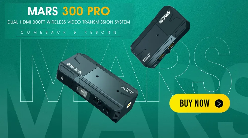 Mars300 использует новейшие технологии декодирования изображений и 5G технологию беспроводной передачи, которая может достигать сверхнизкой задержки беспроводной передачи. Он имеет дальность обзора 300 футов, которая может поддерживать передачу сигнала 1080P 60 Гц и HDMI. Потребление энергии минимизируется при сохранении производительности устройства. И передатчик, и приемник оснащены L-series аккумуляторной пластиной, поэтому Аккумулятор для Sony 970 адаптирован с Mars300.