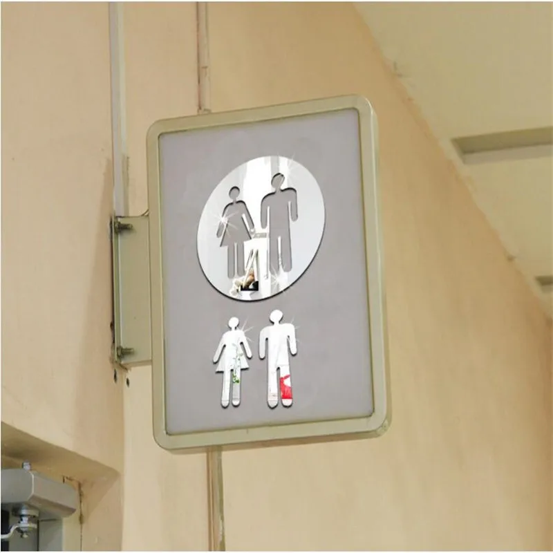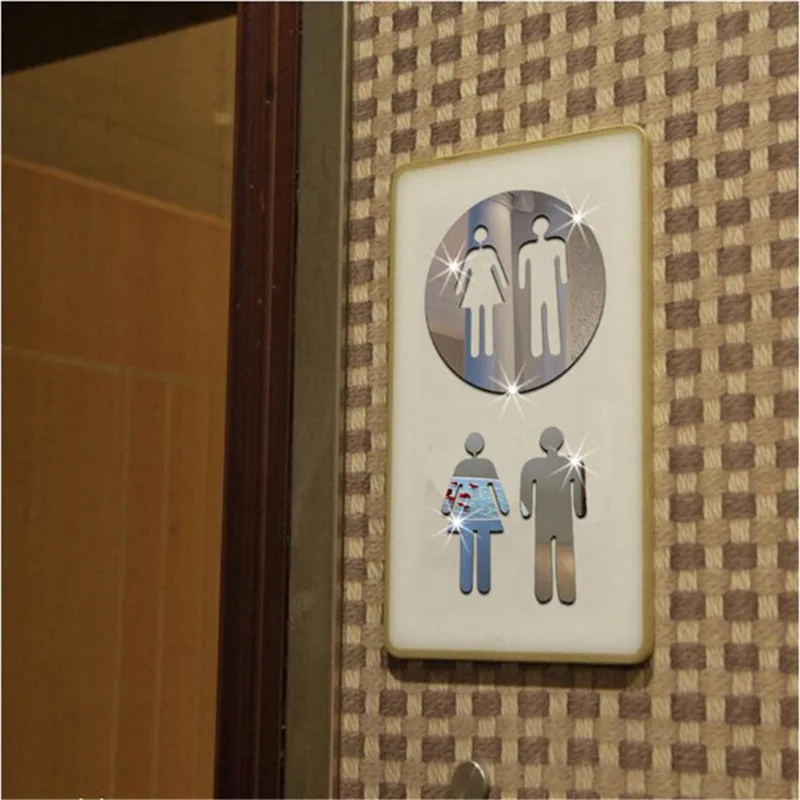 3 шт./компл. горячей акриловый 3D зеркало резные наклейки на стену декоративные Туалет знак зеркало наклейки отель Ванная комната логотип персонажа