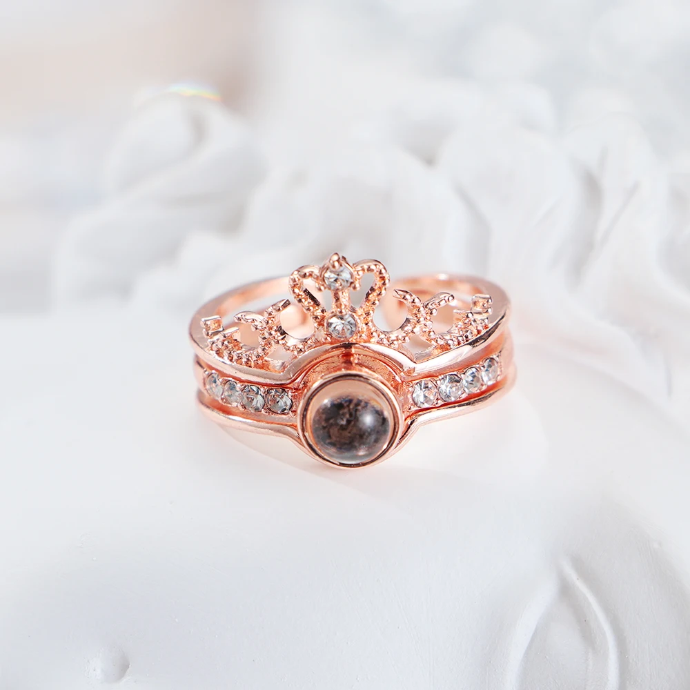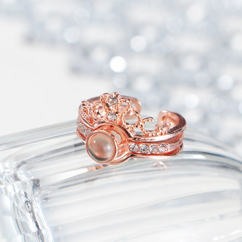 Проекционное кольцо, романтические парные кольца, 100 язык, я люблю тебя, свадебные стразы, корона, регулируемое открытие, циркониевые кольца