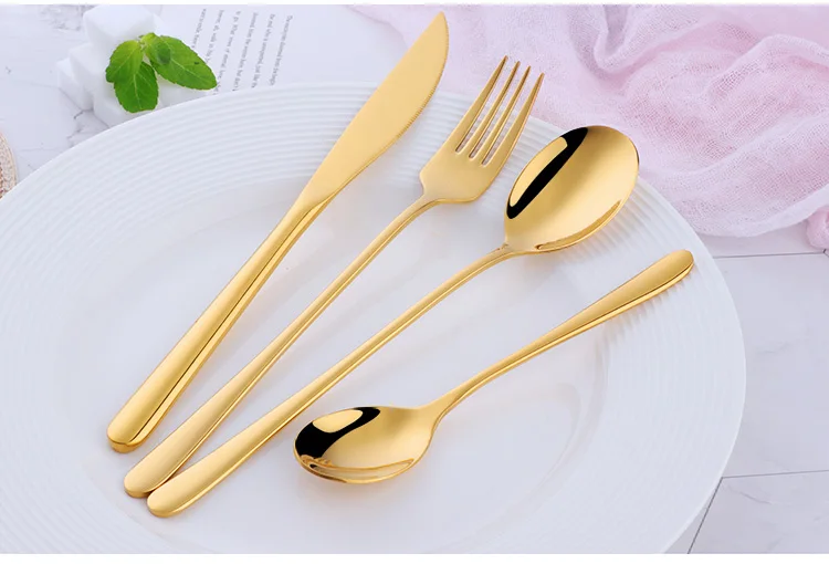 1 лот/4 шт. корейский Еда набор столовых приборов золотистого 18/8 Нержавеющая сталь столовый нож, вилка, набор
