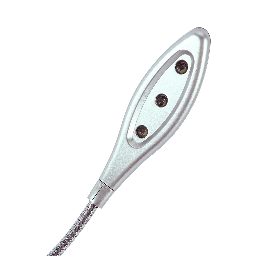 Тип: лампа для чтения Размер: Общая длина: около 40 см. Головка лампы: около 9 см Материал: металл + экологичный пластик Светодиодный Количество: 3 Посылка включает в себя: 1 светодиодный светильник Описание: 1. Светодиодный Суперяркий светильник, обеспечивающий достаточный светильник s, суперяркий белый светильник 2. Супер длительный срок службы, срок службы до 100000 часов 3. Гибкие Металлические Сильфоны могут быть сделаны во всем направлении, свободный изгиб, Угол регулировки, без зажимов, клеев и других фиксированных методов, удобно! 4. Гладкий и высококачественный, новый дизайн хромового цвета 5. Маленький, легкий, легко носить с собой, легко положить в портфель или папку Описание: 1. Светодиодный светильник высокой яркости обеспечивает четкое видение в ночное время, когда вы онлайн или играете в игры ночью, он может защитить ваши глаза, и это энергосбережение