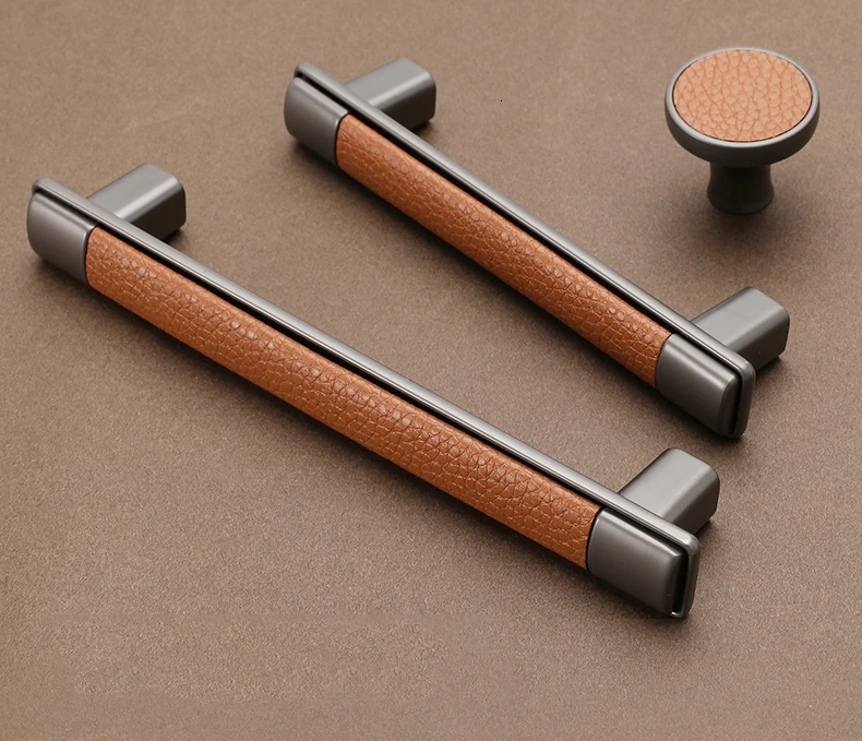 Цинковый сплав + красная кожа/ручки шкафа T бар кухонный шкаф ручки для выдвижных