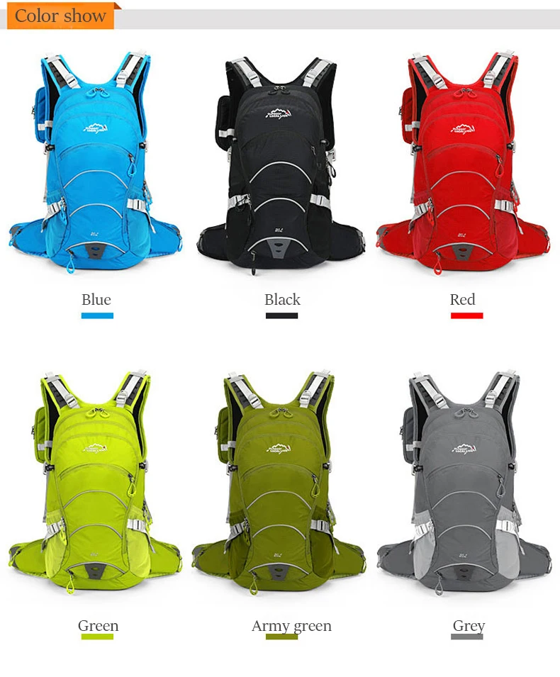 Вопрос: * 100% новый и хорошее рабочее состояние * С внутренним карманом * Весовой светильник * Легко использовать ВКЛ/ВЫКЛ * Регулируемый нагрудный и плечевой ремень Характеристики: Функция: многофункциональная сумка al * Высокопрочная сетчатая ткань + полиэстер * Цвет: 6 цветов на ваш выбор * Стиль: рюкзак * Способность: 20 л * Применение: Велоспорт, туризм, гонки и другие виды спорта.