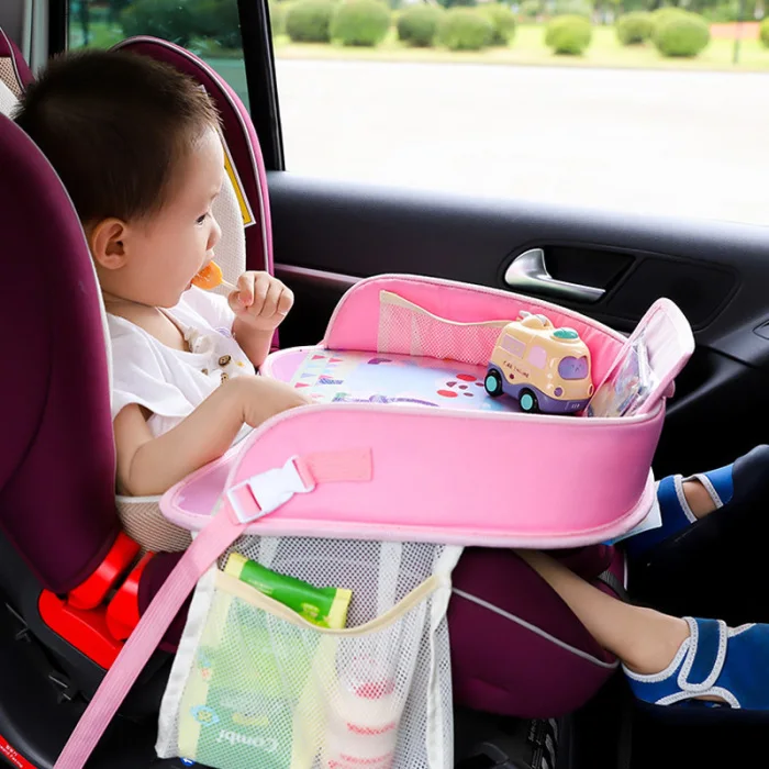 Этот поднос можно использовать не только как игровой поднос для автомобильного сиденья, он также подходит для коляски, самолета, поезда, дивана домаИ в качестве бокового стола, чтобы обеспечить чистое и стабильное место для детей, чтобы есть, рисовать, писать или играть в игрушки во время вождения или путешествия.