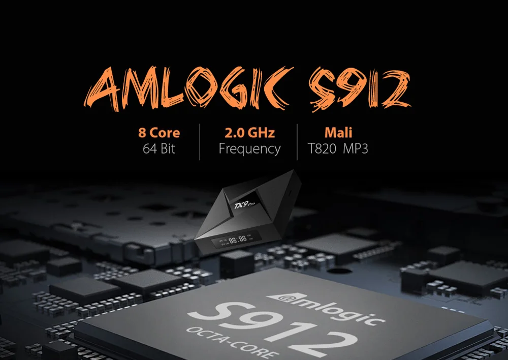 -Процессор Amlogic S912 64 бит Восьмиядерный ARM Cortex-A53 до 2 ГГц -GPU: ARM Mali-T820MP3 -DDR3 2 Гб -EMMC Flash 16 Гб -ОС Android 7,1 -2,4G WiFi -100 м LAN Eithernet -Видеовыход UHD 4K и H.265 аппаратное декодирование