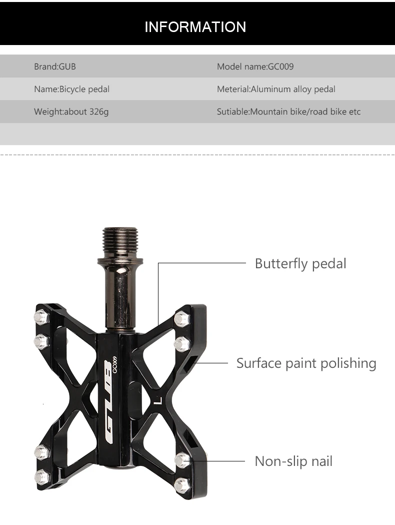 [Xlmodel]-[фото]-[0000] GUB GC009 MTB BMX горный велосипед Велоспорт 3 подшипники платформы педали 240 г/пара CNC AL6061 + Cr-Mo Axis Модель: педаль GUB GC-009 Подшипники: Тайвань 3 шт высокоточные герметичные подшипники Материал: CNC AL6061 + Cr-Mo Axis Цвет: черный, серый, красный Вес нетто: 240 г/пара Посылка: 1 пара педалей в цвете boxMa