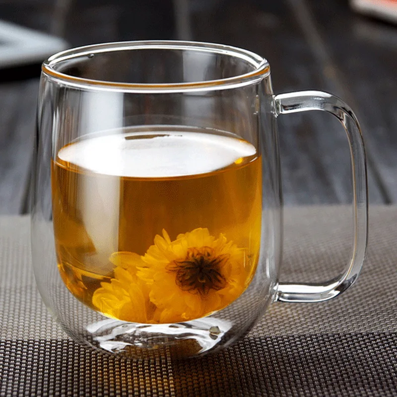 2. Прохладный на ощупь: Держите пальцы в безопасности и прохладе с двойными стенными стеклами, термостойкая стеклянная посуда.