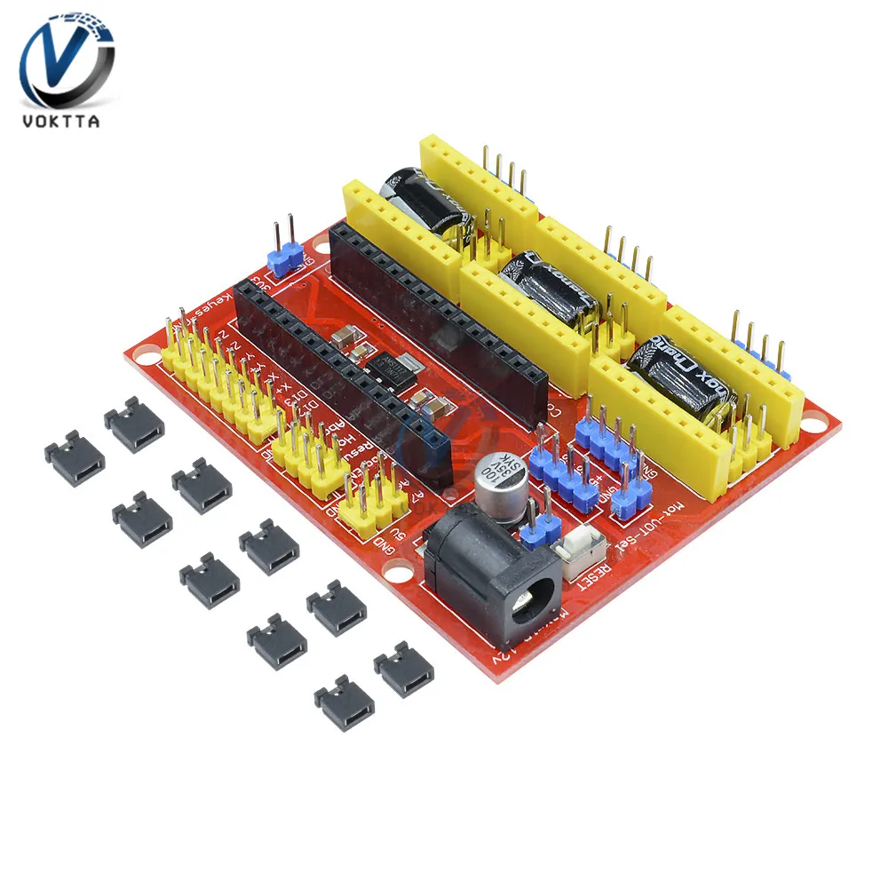 Этот драйвер шагового двигателя 3D принтера CNC shield V4 должен работать с Nano board. Может использоваться в качестве платы расширения для гравировальных машин и 3D принтеров. Он имеет в общей сложности 3 канала слотов для A4988 шагового двигателя Модули драйвера (не включены) для вождения 3 канала шагового двигателя. Для каждого канала шагового двигателя требуется только 2 порта IO, что означает, что 6 портов IO достаточно для управления 3 шаговыми двигателями s. Этот щит может сделать быструю работу для управления шаговыми двигателями вашего проекта.