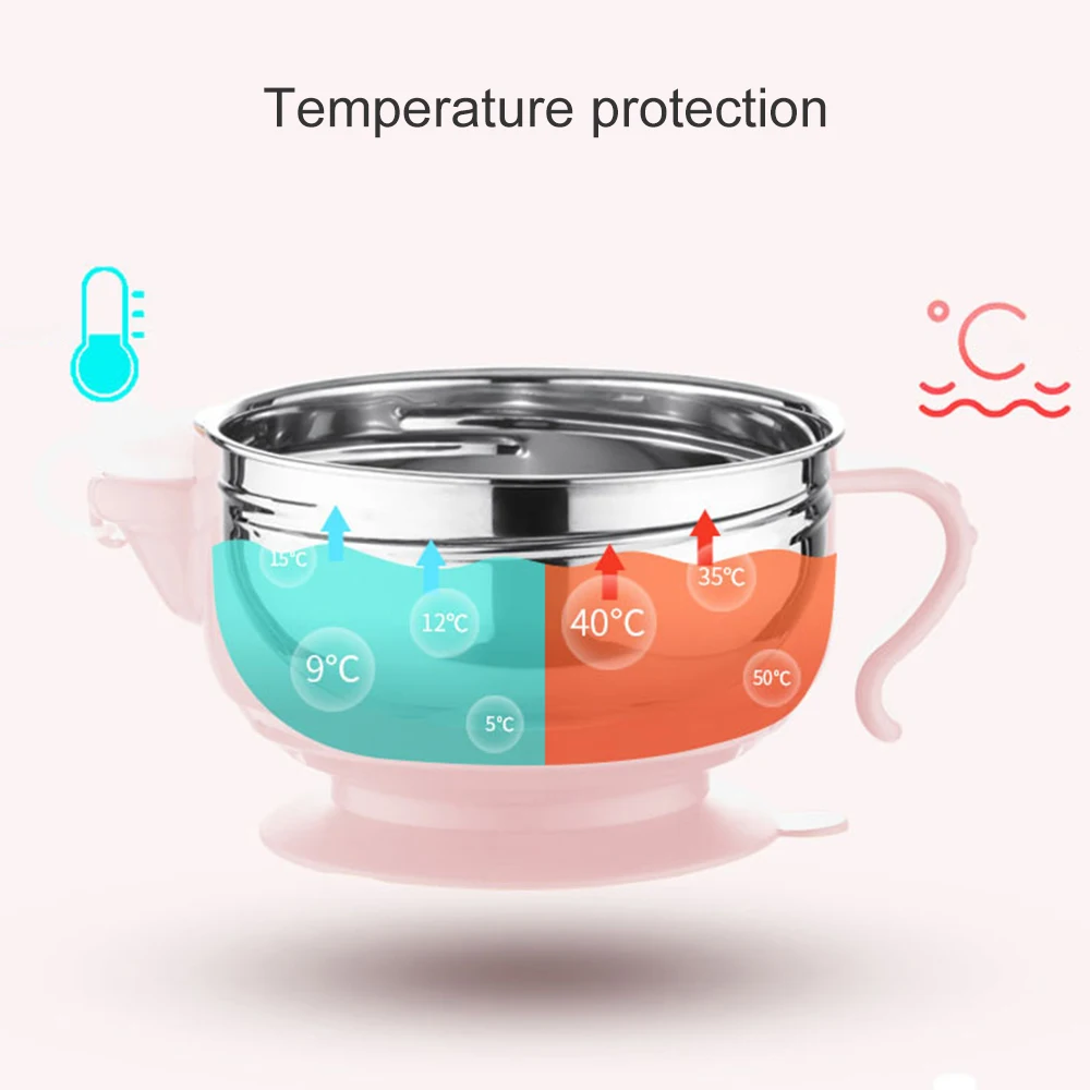 500ML Stainless Steel Children Bowl Non Slip Bowl Kitchen Insulation Bowl Water Injection Insulation Tableware Baby Sucker Bowl 35