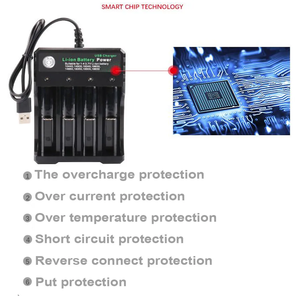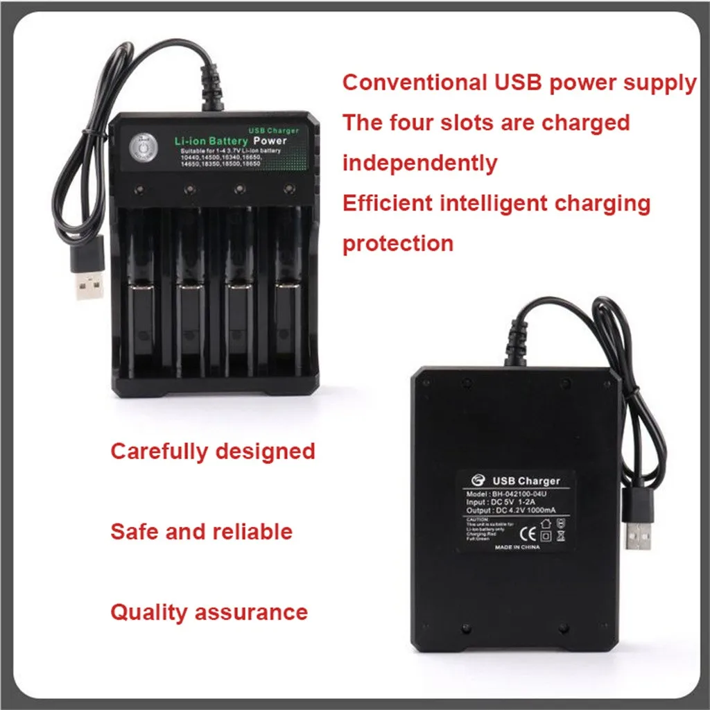 Безопасность во-первых: 4 гнезда штепсельная вилка в перезарядном устройстве соответствует стандарту-CE/EMC FCC, и с интеллектуальными схемами, огнестойкими материалами, по всему миру Гарантия. Пожалуйста, подтвердите, что ваш аккумулятор подлинный/не поврежден/качество перед зарядкой. 4 bay Универсальное зарядное устройство заряжает одновременно поможет вам найти все аккумуляторы несколько разных Технические характеристики: 10440 14500 16340 16650 14650 18350 18500 18650 Батарея и т. д. Защита от короткого замыкания, высокая термостойкость, устойчивость к коррозииPПожалуйста, обратите внимание на положительные и отрицательные, поместите батарею в нужное место или она может гореть.