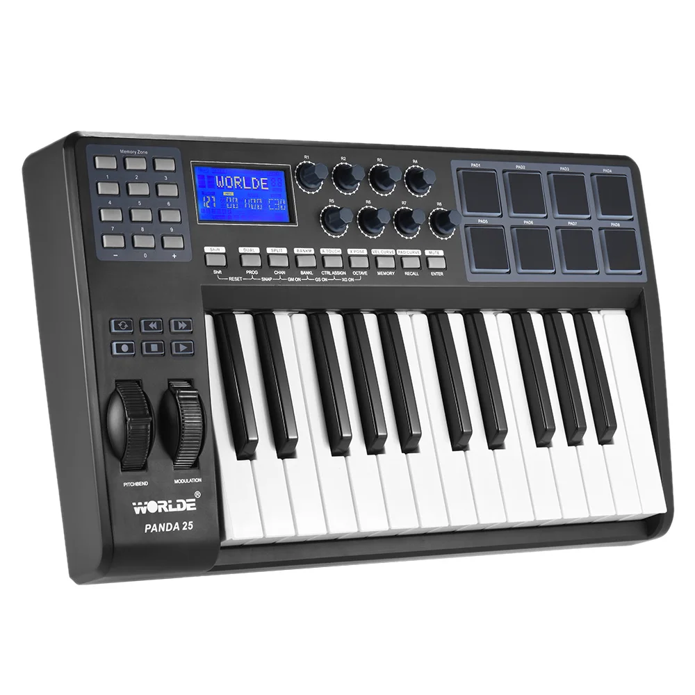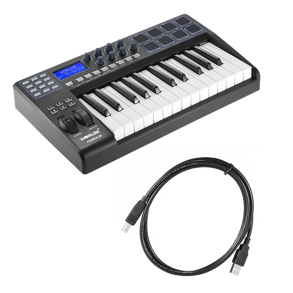 Ультрапортативная USB MIDI-клавиатура PANDA25 на 25 клавиш, 8 барабанных накладок, контроллер с USB-кабелем